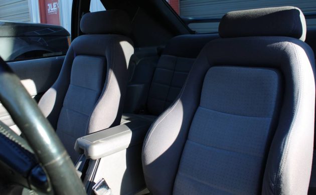 When it comes to an example like this, however, a low-mileage specimens most likely appeals to the muscle car collector who has one of everything. While the SVO wasn’t necessarily subject to abuse like your standard 5.0-equipped Fox body, there seems to be an outsized amount of them that are left as half-finished projects. I suspect the allure of increased boost and other turbo-friendly modifications leads to many of these cars being taken apart and never put back together – at least not the right way. And given you can still buy a very nice SVO for not a huge amount of money (this car not included), it just makes more sense to buy a driver. The interior of this car shows you what you get for your additional dollars, however, as the seats and steering wheel – and everything else – are in mint condition.