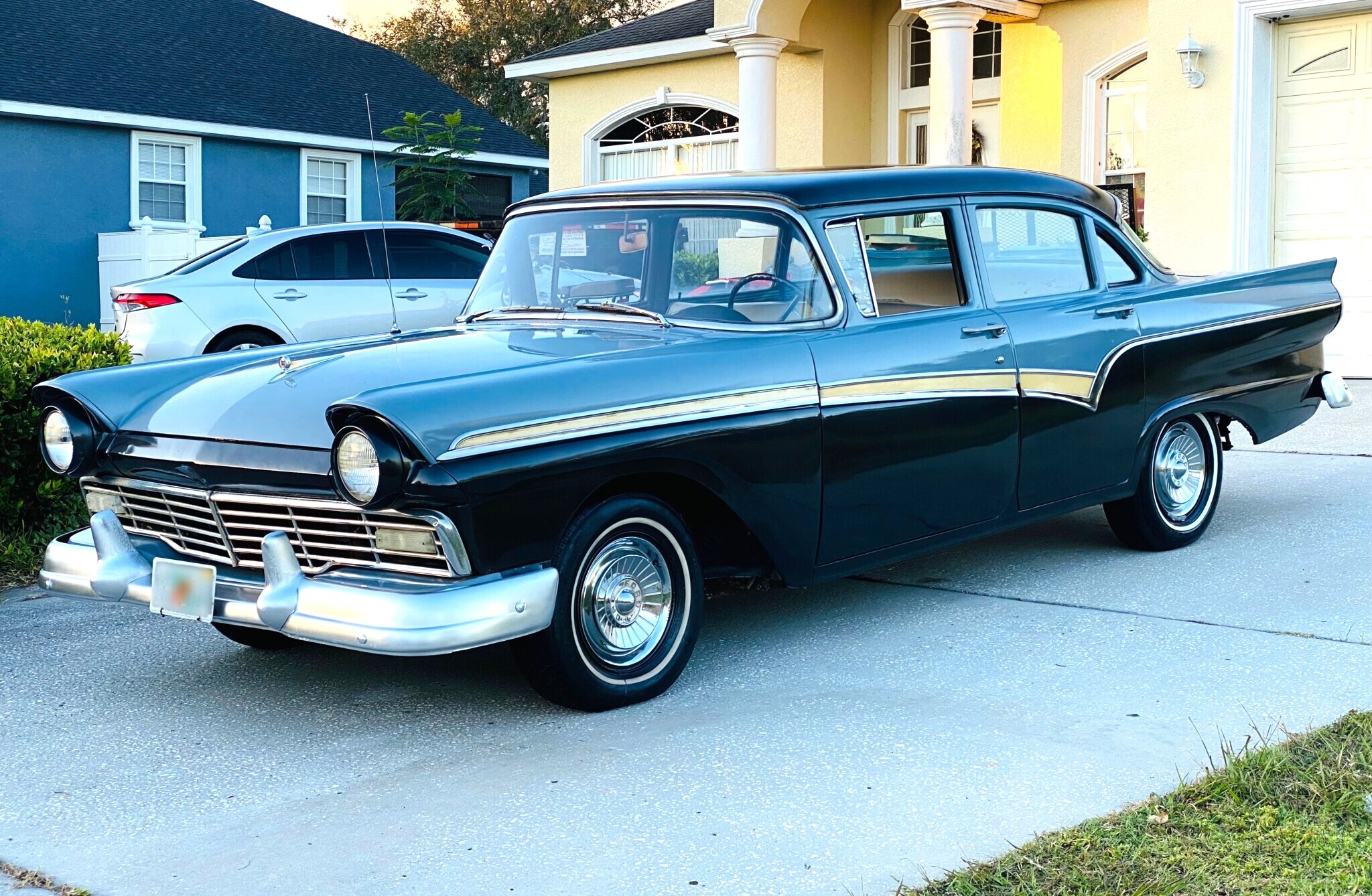 In the early ’60’s my Dad had a brown and yellow Fairlane 500 with the 2sp auto, a 4 dr hardtop (no pillar). It had a 312, 4 barrel, and factory dual exhaust. The valve covers said “Thunderbird Special”. I had recently got my driver’s and let me tell you, that Ford was fast. Butt ugly color but I loved that car. We lived in Northwest Ohio and yep, EVERY car rusted. We had another 57 Fairlane, 2 dr, 292, 3speed. Nice pretty two tone gray. Headlights completed rotted out of the fenders. We rebuilt the headlight mounts with bondo, got an Earl Shieb paint job, black, and the Ford looked like a bugged eyed creature but we drove it for years. Those early Ford V8’s had a serious problem getting oil to the rocker arm and JC Whittney sold a kit that was basically a copper line attached to the block somewhere and then stuck into the valve covers. A number of people ran kerosene through the engines to clean the oil passages. I remember pulling the valve covers and the amount of sludge around the rocker arms was amazing. I would still take a 312 ’57 Ford hardtop any day to a 283 ’57 Chevy. Just my opinion!!