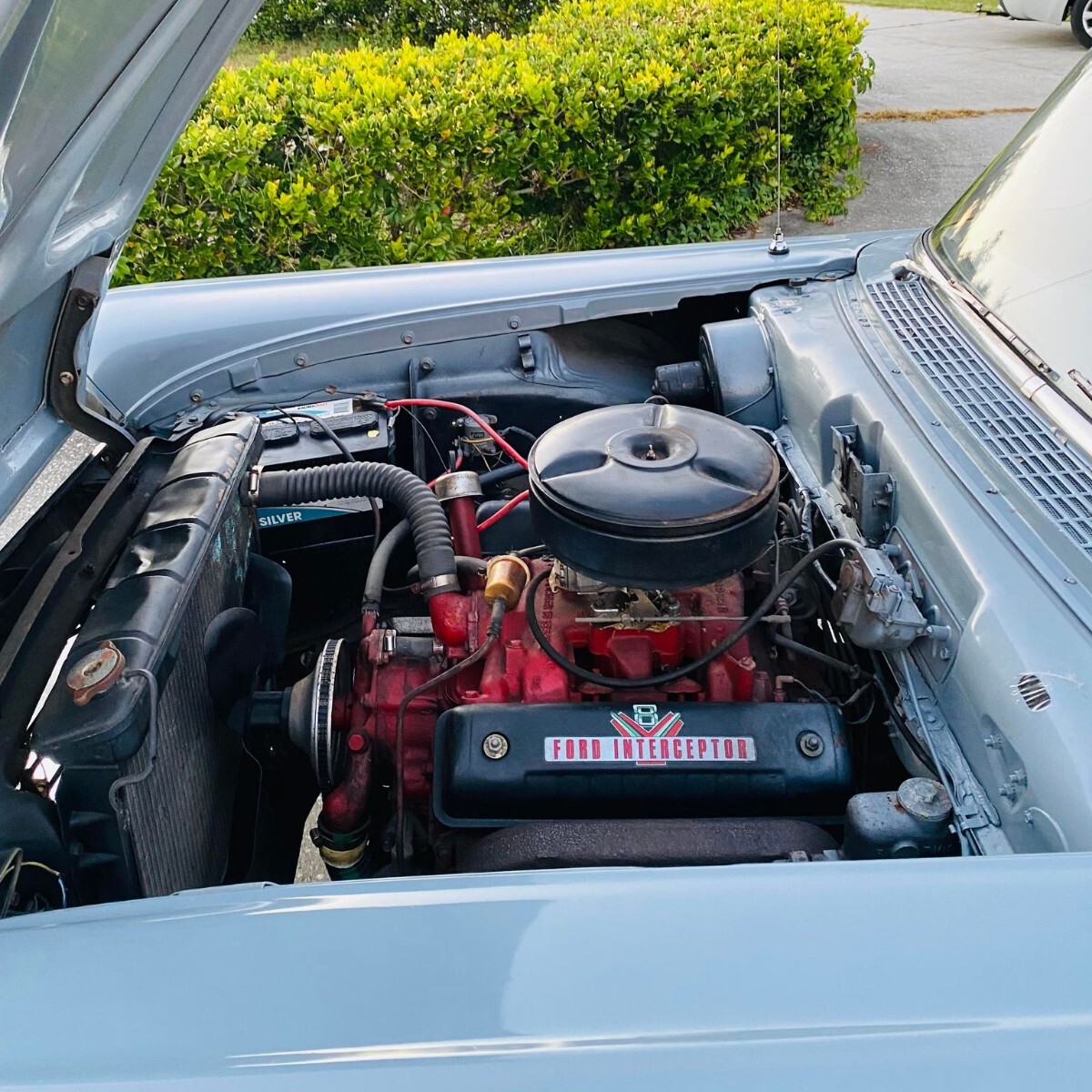 I owned a ’57 Custom 300 4-door like this one with the 272 V8, but the valve cover decals made no mention of Interceptor. They said Ford V8 and showed the Y-block symbol. And, maybe the original fuel/vacuum booster pump for this car is now made of unobtanium, ’cause the wiper motor vacuum line would ordinarily be routed to the booster on the upper side of the pump, then from there to the vacuum port on the intake manifold. Otherwise this car looks pretty darned original.