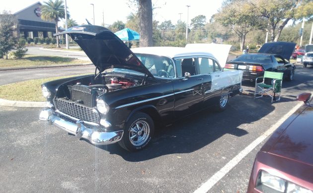 You could two tone the ’55 Chev in almost any color combination and it would look classy. I’m fairly sure they did offer a yellow and white combo, though it may have not been original on this car. I do remember seeing a two-tone salmon and black ’55 BelAir, truly stunning.