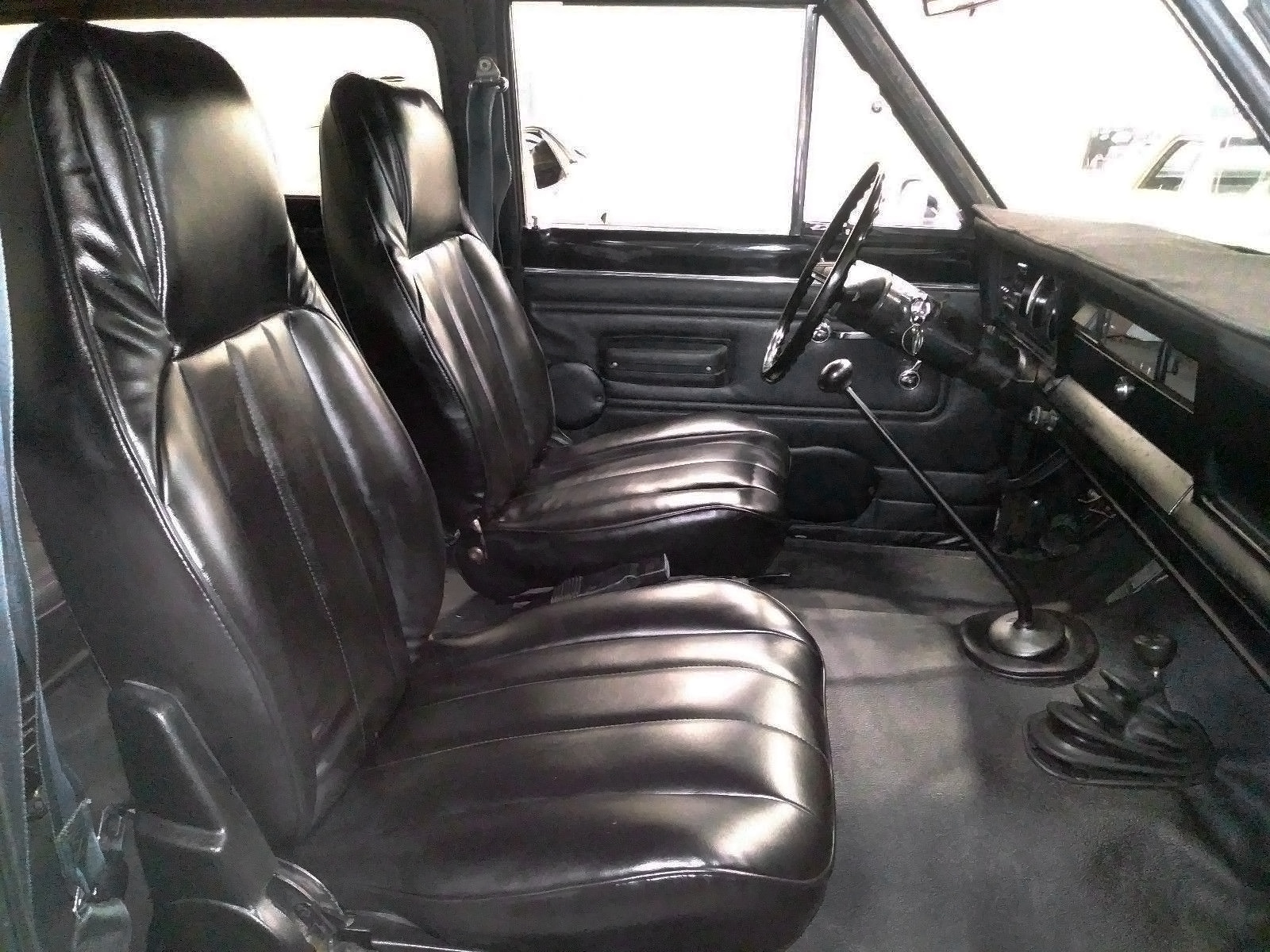 The Quadra-Trac AWD option was only offered with the TH400 automatic. If you had the base 3 spd manual or optional 4spd, it came with a Dana 20 part time transfercase. I have seen and owned many stick shift FSJ’s, but they don’t seem to pop up as often as the automatics. Someone has put “rear” hubcaps on the front wheels, thus covering the lock out hubs. These are great vehicles, but i agree they are very prone to rusting badly. I have never seen a straight black one that wasn’t a Super Chief series of these btw. Seats are not correct as someone else pointed out and I bet a dealer or previous owner added those stripes.