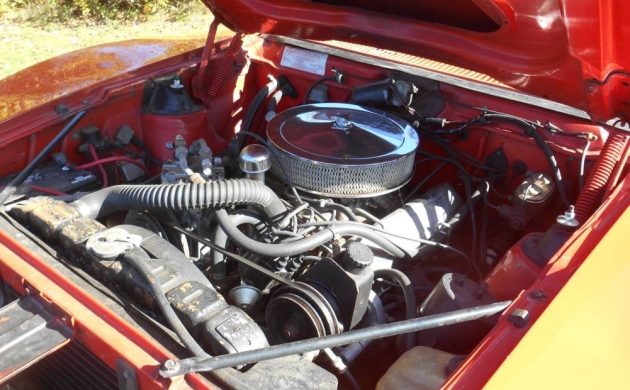 The interior is at least partially new and looks great. Other than one spot where some rust is trying to brew, the body appears sound, though the orange paint comes across as fading (a variant of the Big Bad colors AMC offered in 1969 and 1970?). The shocks and front suspension bushings were changed not long ago, along with the clutch and drum brakes (weren’t front discs standard on the AMX?). This is a driver quality car, but will it move at the seller’s price (not a Mustang or a Camaro here, the more popular ponies)?
