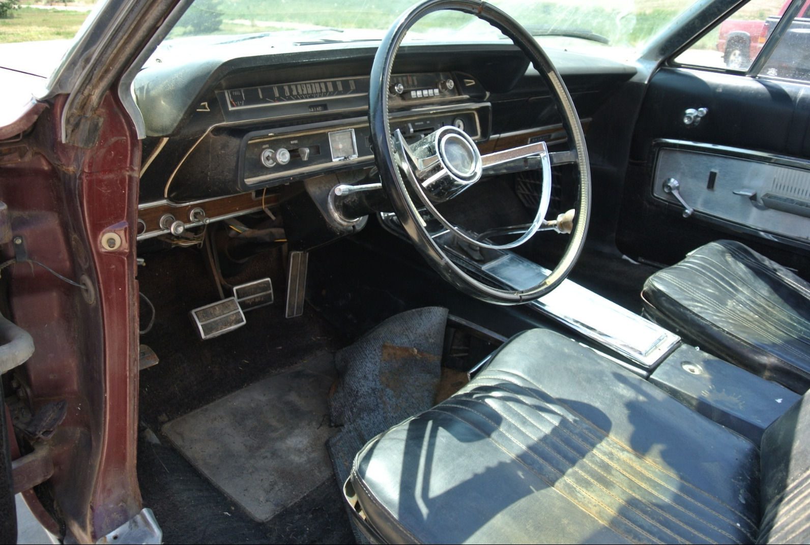Thankfully the word “patina” is not used in the seller’s description, as most would agree that faded paint is not always a plus. The bumper appears to be straight, and the grille isn’t bad, but could use some dental work. Stacked headlights were new with 1965’s complete redesign.