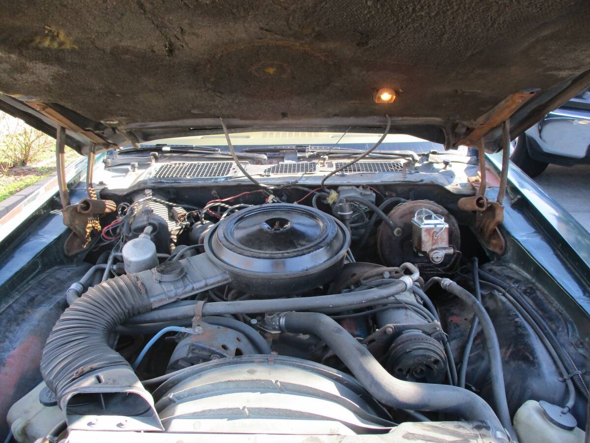 Under the hood is a 350 cubic inch small block V-8. It is backed with a four-speed transmission, and power is delivered to the rear wheels through a Positraction equipped rear end. The fellow who checked those previously mentioned options also opted for a heavy-duty radiator, sport suspension, and power disc brakes.