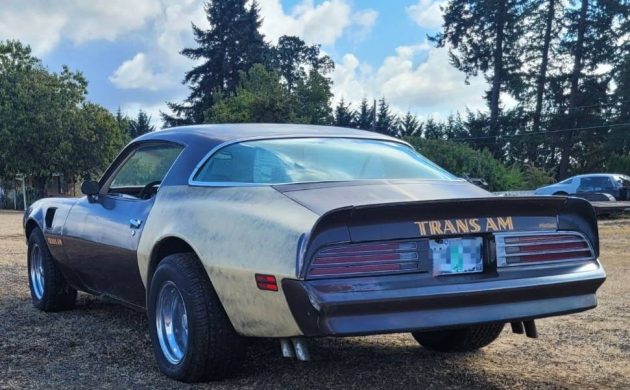 The driver rear quarter looks like it has been replaced or repaired. The rear tires on this Trans Am are super wide and stick out of the fenders. The car rides on aftermarket chrome wheels. This car could make a good driver and the 4 speed makes it a lot of fun to drive.