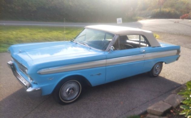 Ford was working on a lot of excitement back in 1964. The April introduction of the Mustang was, of course, internationally newsworthy (even Ian Fleming’s blockbuster Goldfinger, filmed in ’64, featured the new pony car), and the lowly compact Falcon got a kick upstairs, enjoying a sharp-looking exterior upgrade that meshed perfectly with its “Sprint” performance version. Today’s discovery, courtesy of Curvette, is a ’64 Falcon Sprint convertible, and it’s very nicely outfitted. Seattle, Washington, is where you’ll find this Skylight Blue drop top, and it’s available here on craigslist for $28,500.