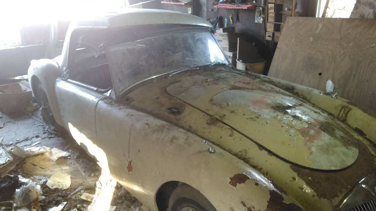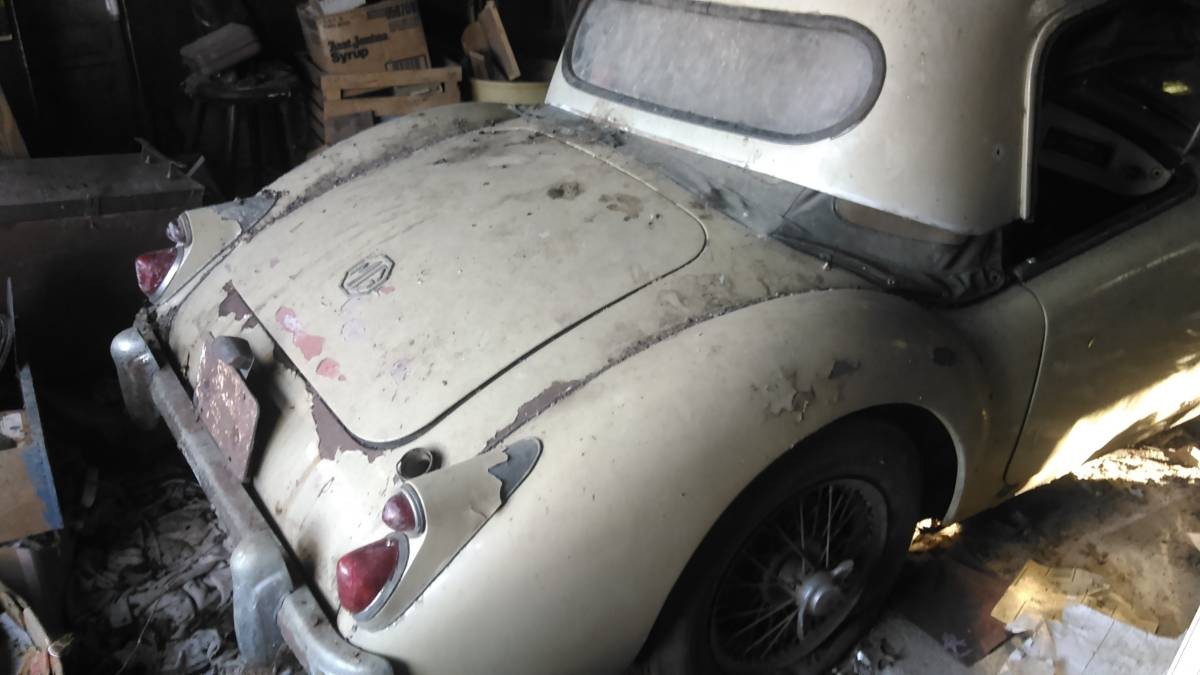 We surmise this 1960 MGA is being liquidated as part of an estate and it (along with a bunch of other stuff) sat untouched in an old garage for many years. Though it’s hard to tell from the photos, we’re told it has good bones although it was last driven 40 years ago. It’s currently wearing a soft top, but the original factory matching hardtop is included and appears to just be sitting on top of everything else. There is mostly surface rust and peeling paint to contend with in addition to a thorough cleaning up.