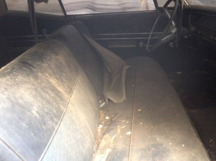 The seller’s Catalina has decades worth of dust and dirt on top of it. There is no mention of corrosion and the photos provided only show surface rust. Once the car is removed from its perch, a good cleaning will reveal the extent of work to which the body will need besides fresh silver paint. 2-door hardtop Catalina’s had a substantial rolling presence on the road, especially when fitted with rear fender skirts (we don’t know if this one has any). Given that the seats were recovered before the car went into hibernation, the headliner and carpeting would need scrutiny to determine their condition.