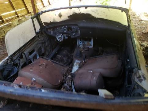 The seller notes that the MG has been parked in this barn for 40 years, and as you can see, time has not been kind to it. However, he says there’s no major rot-through (at least that he saw on his “quick” view of the car), which wouldn’t surprise me given Georgia doesn’t use nearly as much road salt as they do in my neck of the woods. The interior may be a lost cause, but did someone flip the seats around to protect the upholstery?