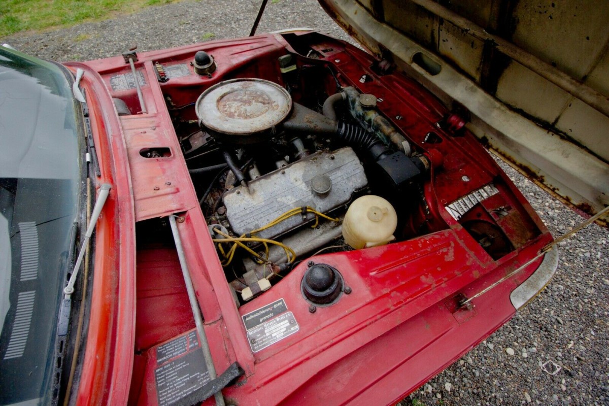 The under-hood shot tells us the hood is likely from another car, as I believe the hoods were painted body-color on the underside. The red paint is original, according to the tag on the inner fender that confirms it as beingĀ granada, a very pretty shade that’s popular among ’02 enthusiasts. The seller claims he is working on getting the engine to turn over but that he hasn’t gotten it to fire, only noting that the gas gauge springs to life when power is clicked on. Though the later 2002s are faster, an early 1600 is a rarity by comparison and definitely wins out if you dig cars with a high obscurity factor.