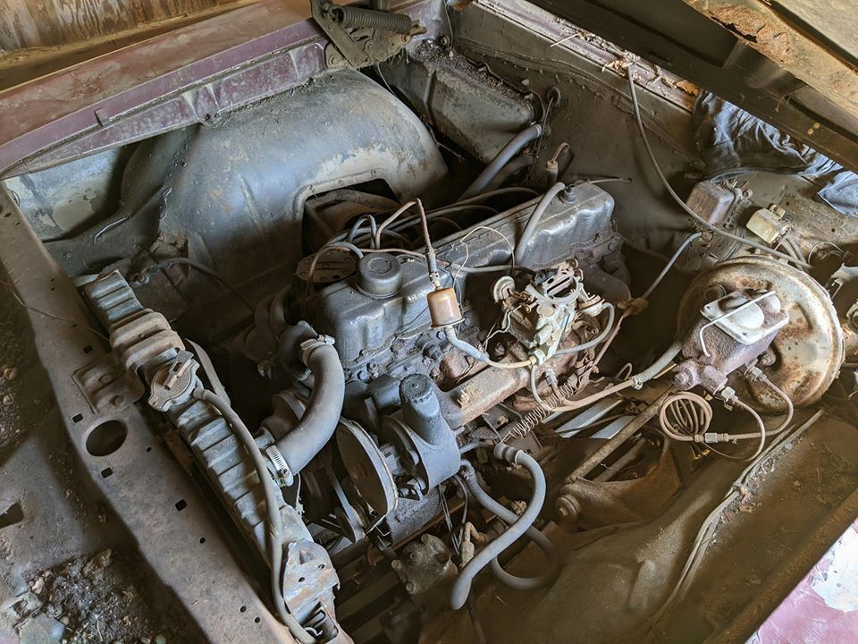 That could be the reason someone swapped the original engine for this Chevy straight six…