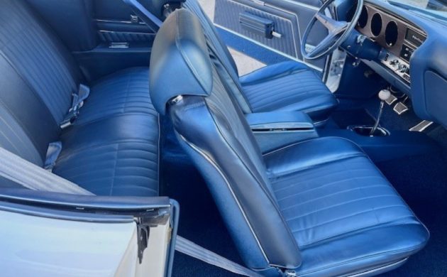 Although it isn’t stated in the listing text, I believe that the restoration probably included a retrim in Blue vinyl. The only thing that surprises me is that the first owner didn’t order this classic with air conditioning. However, they did equip it with power windows, a tilt wheel, and a Hood Tach. As with the exterior, the interior appears spotless. There is slight wrinkling on the front seats, but this isn’t a deal-breaker. Otherwise, this interior should receive plenty of positive feedback when the buyer hits the road with the top down.