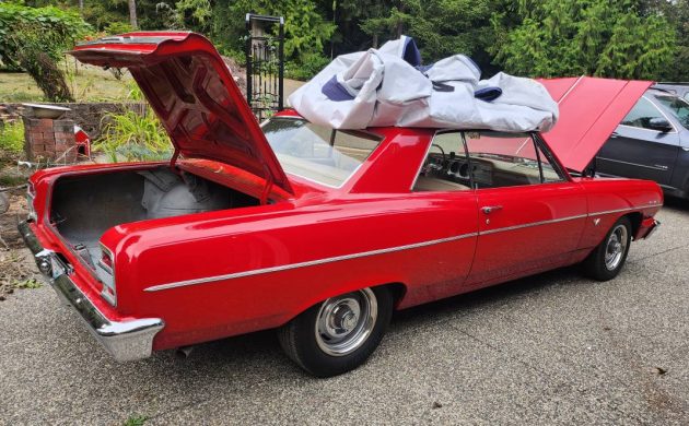 Although the American new-car market remained the home of full-size vehicles in the early 1960s, demand for smaller vehicles was growing. The Ford Falcon demonstrated this within the compact market, and Chevrolet stepped up to the plate in 1964, releasing the Chevelle as its mid-sized offering. The First Generation remained on sale until 1967, with the SS variant becoming a legend amongst muscle car enthusiasts. The Malibu variant appealed to those seeking a more luxurious motoring experience, offered by Chevrolet in four body styles. This first-year Sport Coupe presents impressively in Red, although I don’t believe that it matches either of the two shades of Red offered on that year’s color palette. However, considering the wealth of changes made below the surface, that is unsurprising. This classic doesn’t just look good; the seller confirms it is rust-free. The paint sparkles in the sun, the trim is equally impressive, and the glass is clear. It sits upon a set of new Rally wheels and tires, giving this car a sense of purpose.