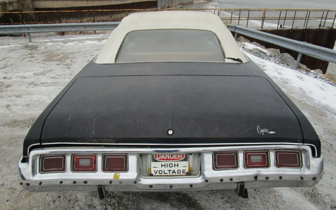 Rule number one when selling a car; know what you’ve got. The seller of this Caprice Convertible is advertising it as a 1974 model, but it is actually a 1973. Checking the VIN number confirms this because sometimes cars can be reconstructed with parts from different years. Here is a 1973 Chevrolet Caprice convertible for sale here on eBay in York Haven, Pennsylvania.
