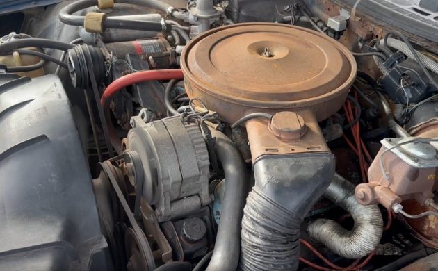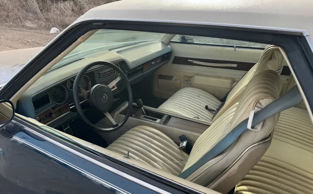 Speaking of ventilation, the seller mentions that the driver’s side floor is “soft” and will need replacing, not that you’d expect anything less from a car from the northern tier of states. Additionally, the paint is “not perfect” and “has scratches,” but it appears to be a very pretty shade called “Admiralty Blue,” which complements the white vinyl top and interior nicely.