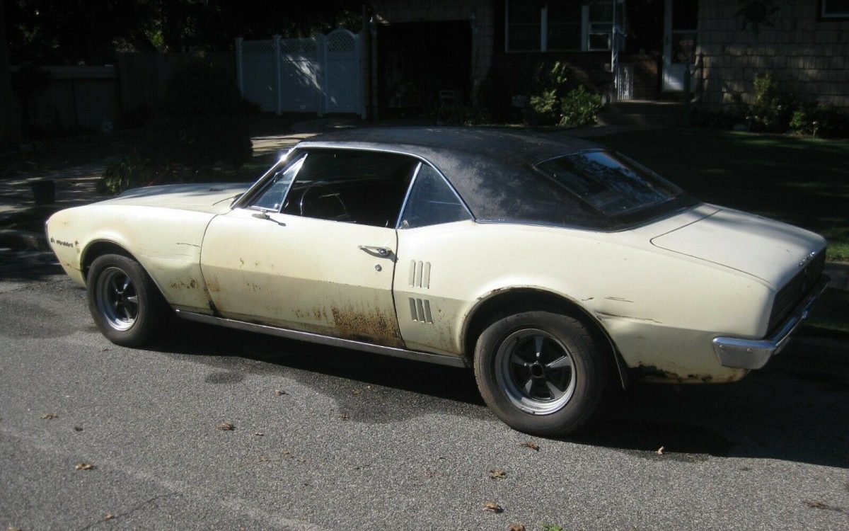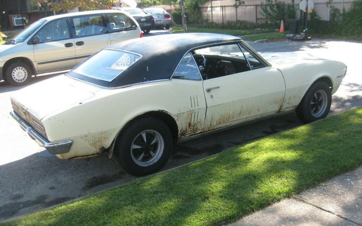 Amazing condition for that interior given the rest of the car! This is the sort of used Firebird I would see all through the late 70s and early 80s. The yellow with black vinyl top would keep the lead foots away unless you budgeted for a repaint. Now in 2020 this combo seems quaint in a 1967 sort of way. I would like to see trunk photos and for the seller to pull up the carpet.