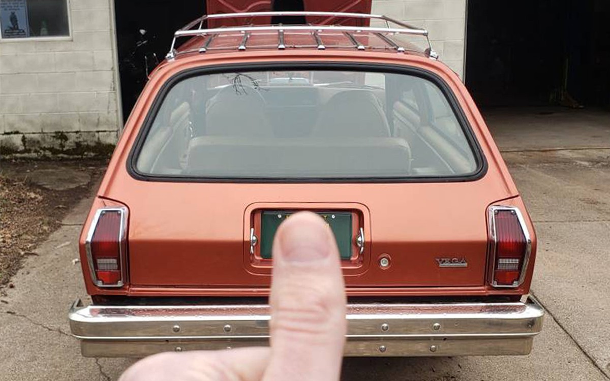 The Fonz says, HEEYYYYYY!!… Actually, they’re trying to cover up the license plate but I give this one two giant thumbs up. The Vega was made for model years 1971 through 1977 and yes, the early cars have nice small bumpers but as the kitchen contractor keeps telling you every time there’s a problem and the price goes up, “It is what it is.” We have to work with a later 1976 Vega wagon and that’s ok. This one has a 400 V8 in it for cryin’ out loud!