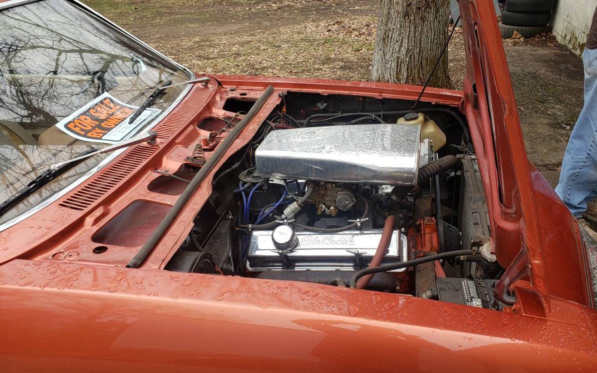 This car seems like it’s worth $6,500 in this condition with no rust even without a monster V8 lurking under the hood. We know that this is a 400 cubic-inch Chevrolet small block, any guesses on the horsepower? The original 140 cubic-inch inline-four would have had somewhere between 70 and 80 hp. They say that it’s “pretty fresh” and it has a four-barrel Edelbrock carb and a mild cam. I would love to hear and see this one. I can’t believe that this car will be available for too long at this price. Any thoughts on this V8 Vega?