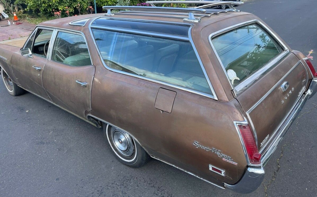 The big surprise here is the 340 HP, 400 CI V8 engine that resides under a hood that appears to have been boosted from a GS. The seller advises, “Runs good and yard drives“. With that engine under the hood, this sucker oughta haul! Unfortunately, it’s held back a bit by its two-speed Super Turbine automatic transmission. According to research, the preferable Turbo-Hydramatic 400 three-speed automatic wasn’t available in the Sport Wagon.