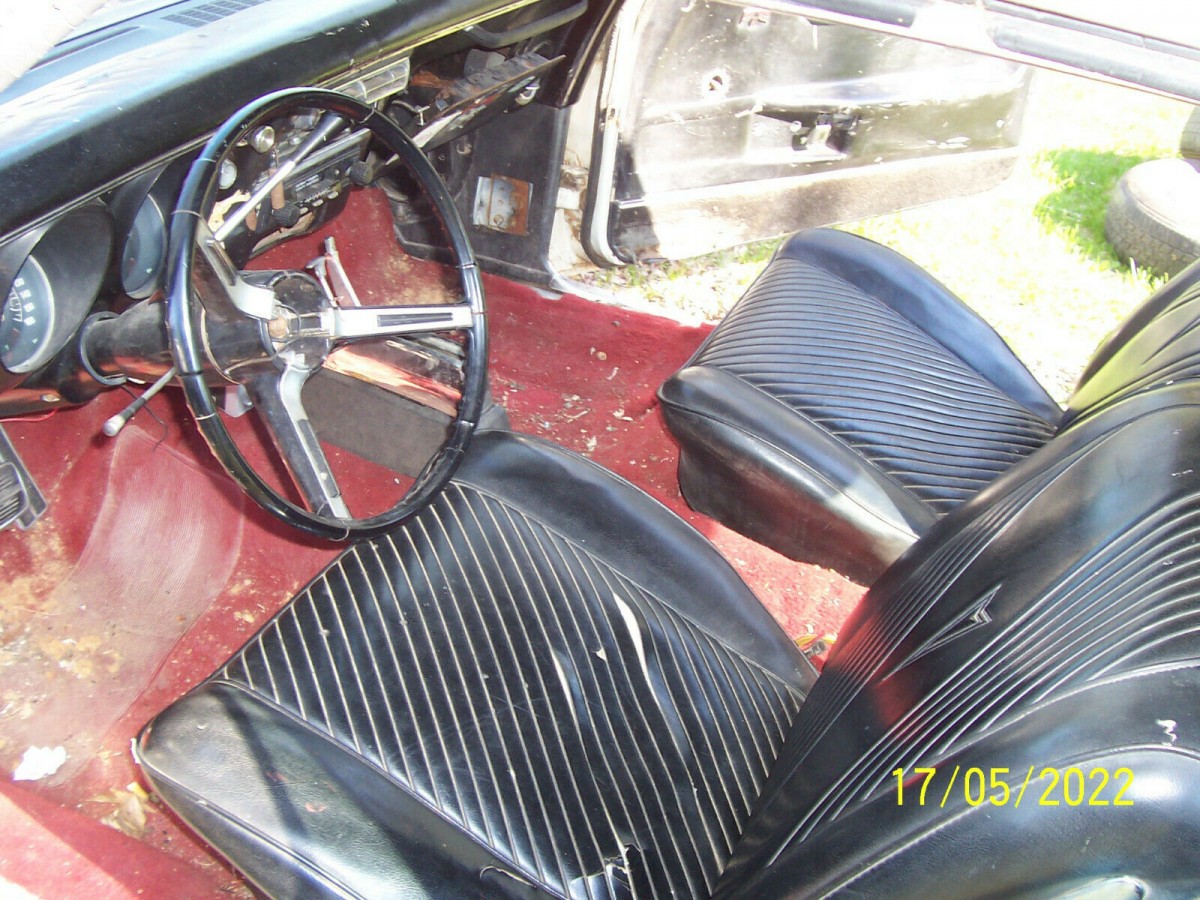 According to the cowl tag, this Pontiac was painted white when it left the factory, and traces of that color are present in the trunk. The current burgundy/maroon finish has outlived its usefulness and both rear quarter panels are in bad shape, especially the one on the driver’s side. The interior was probably black in color, to begin with, but the rear seat is the only part of the upholstery that’s now white. A lot of work is needed here, but since the original color and motor are gone, you could probably do whatever you wanted and not give up any future value.