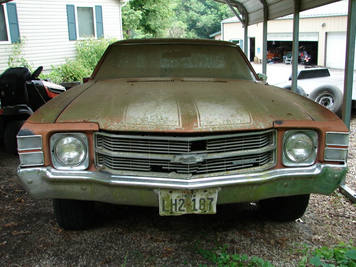 This is actually an El Camino Custom. 71 El Camino’s came in two trim levels, base and Custom. The Custom was basically a Malibu level El Camino, adding carpet, Malibu seat covers and door panels, the silver paint along the lower body, wood grain applique on the tailgate and bright door window frame trim.