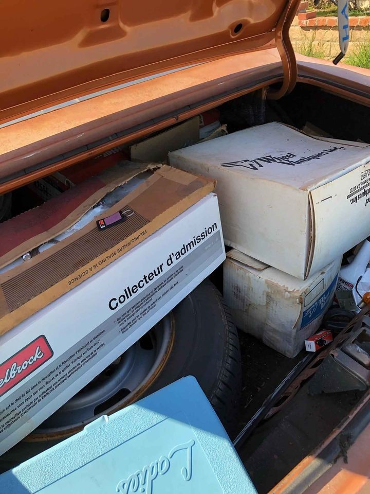 We’re told the Monte Carlo is in working condition, but all the photos provided are taken of it in a crowded parking lot with other cars all around. Different views of the complete auto in different places would go a long way in helping to sell any car. We don’t see any major issues with the body, although the faded paint that covers the whole thing doesn’t match between the front clip and the rest of the car. What little we see of the interior looks good, although the steering wheel has been replaced. The seller may have been entertaining some performance changes for the car as there is a set of Edelbrock headers in the trunk.