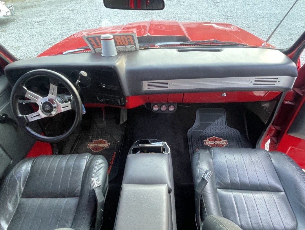 The body and red paint look good, although an area on the left rear quarter panel is going to need patching, and that area resprayed. The interior looks to be in terrific condition with several custom touches in terms of materials used and a leather-wrapped dash with working gauges. If you were looking for a hot truck for show duty, this might just be the one with a bit of work.
