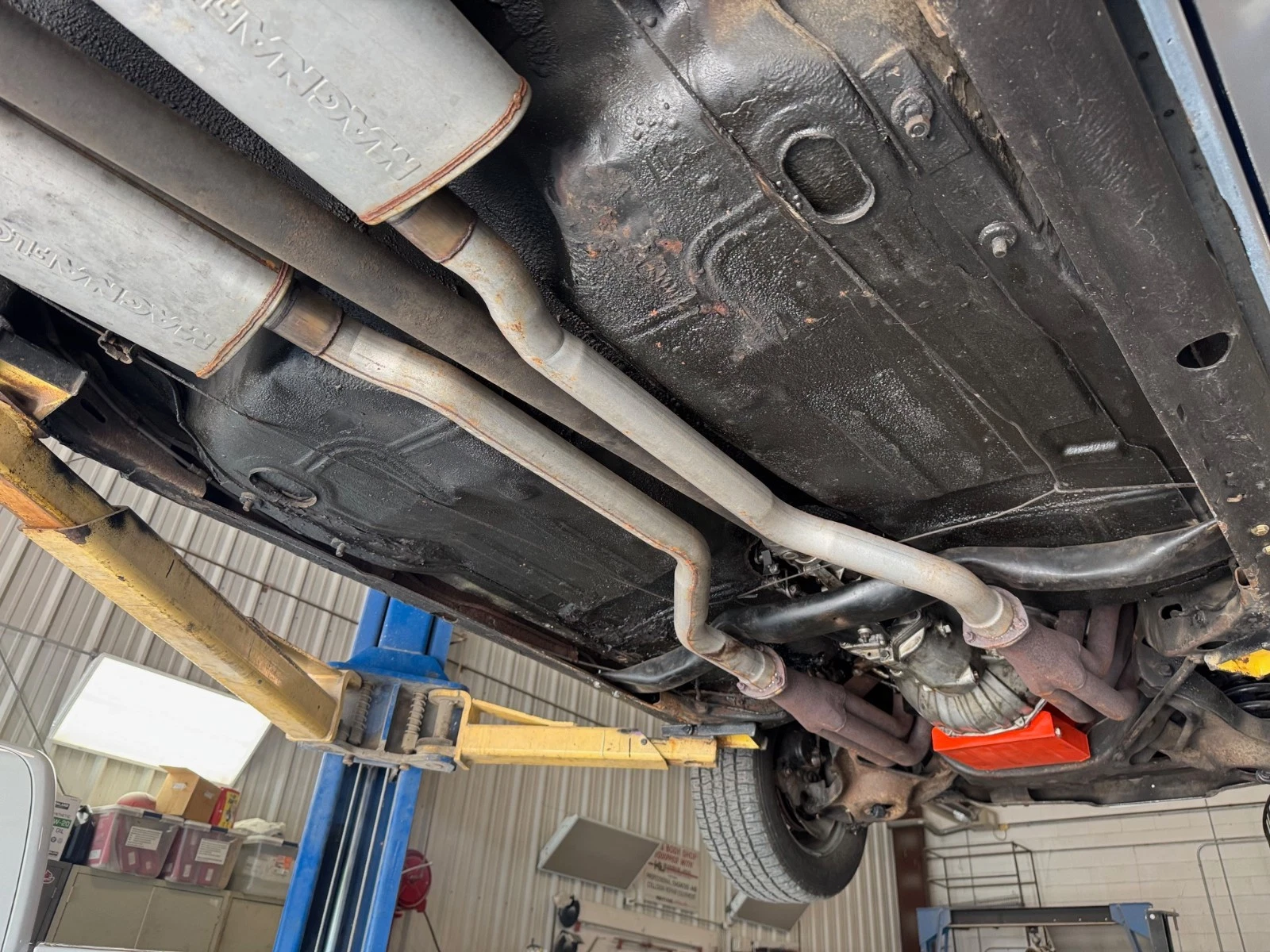 One repaint is said to have been performed at some point in the Chevy’s original dark blue color, and the seller is transparent about the finish not being quite perfect. However, the car is said to remain solid, and I’m not spotting any areas of sheet metal showing obvious rust or corrosion. The silver along the bottom complements the blue hue nicely, and those Rally wheels look good on just about any Chevrolet body style. A couple of shots of the undercarriage are also provided, and thankfully, the platform appears strong as well.
