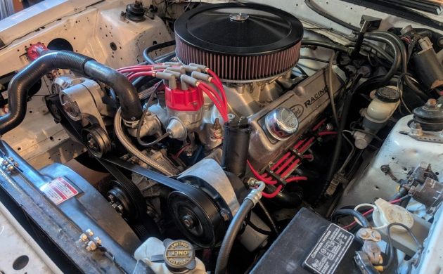 Still considered a small block like the ’89’s optional 302 (5.0L), this 351 accepts the 5.0 accessory drive and fits the V8 motor mounts. A larger deck makes the 351 wider and it normally takes special motor mounts and/ a K-member to get a 351-based mill under the stock Fox hood. This one’s stroker kit (crank, rods, and other bits) bump the cubes to 408 cid (6.7L). That plus curated performance parts render a stout 401 HP at the wheels. An old-school carburetor fuels the amped up 408.