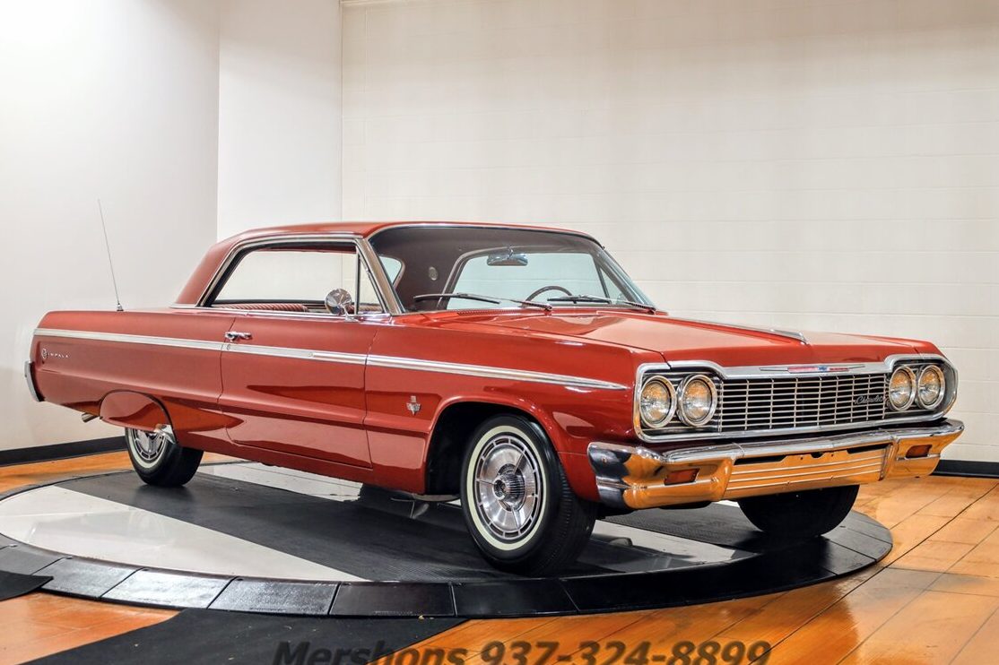 This 1964 Impala was ordered during the final year of Third Generation production, and, as the SS variant, it features beautiful engine-turned bright trim that stands out against the car’s dazzling Ember Red paint. The fender skirts accentuate the low, sleek lines, allowing the Impala to make a bold visual statement. Finding anything to criticize about the car’s presentation is seemingly impossible. What makes this classic particularly noteworthy is the fact that the paint is original. That is amazing when you scrutinize the images and discover how few imperfections it has accumulated in over six decades. This SS has a known ownership history and has only ventured from its warm, dry garage on weekends, making its lack of rust unsurprising. The glass is crystal clear, and the spinner wheel covers suit this car’s character perfectly.