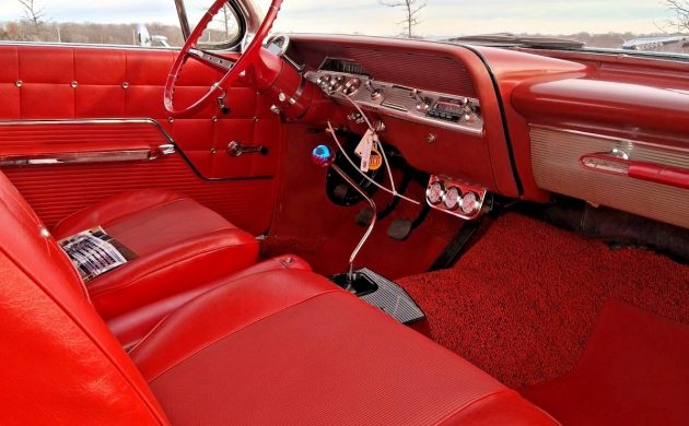 I did not study this Impala closely, but a cursory glance at the listing, I am not finding a whole lot to fault. I could maybe do minus all of the chrome, like the control arms and a more factory finish inside the engine compartment, but I do love the color combination – the red interior really pops against the metallic silver, and the redline tires tie it all together. Sharp looking ’62.