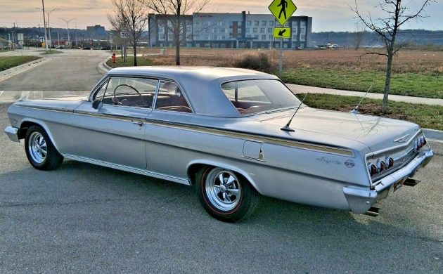 Chevrolet unveiled its Third Generation Impala for the 1961 model year, featuring a complete restyle. The iconic “arched eyebrow” rear fins were consigned to the pages of history, with a far crisper and more restrained appearance key to the badge’s success. This Impala rolled off the line in 1962, with its first owner ordering it as a Super Sport. The car’s exterior is seemingly faultless, which is unsurprising given that it recently emerged from a frame-off restoration. Its Satin Silver Metallic paint shines like a mirror, cloaking arrow-straight panels. There is no rust to spoil the new owner’s party, and the trim and glass are excellent. The Impala sits on a set of chrome Cragar wheels with Redline tires. However, it appears that the original wheels and the correct wheel covers are included for those who prefer authenticity.
