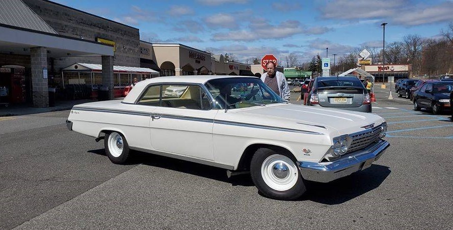The 409 V8 was new in 1962, replacing the retired 348 as the biggest engine Chevrolet offered in a production automobile. Two versions were available: a single 4-barrel with an output of 380 hp and twin 4-barrels at 409 hp, one horse per cubic inch. The former engine was more commonly ordered and production estimates for that engine are in the thousands. The quads were seen less often, so in an Impala SS with a 4-speed manual, there aren’t likely that many still around. However, what would truly be rare are the ones with aluminum fenders and hoods for less weight, making them factory race cars.