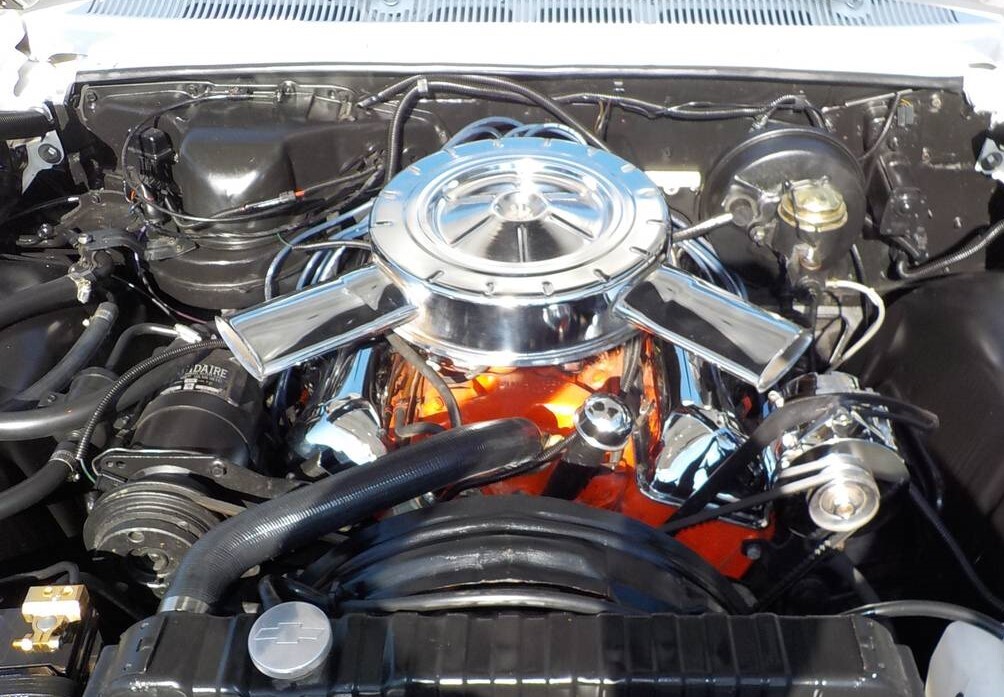 The body, paint, and interior look squeaky clean, so if this is a restoration it appears to have been done well. Nicely detailed, the engine compartment is practically clean enough to eat off. The only things that may not be stock are the wheels which look good on this full-size cruiser in white. Perhaps the seller is a dealer as we’re told that trades will be accepted.
