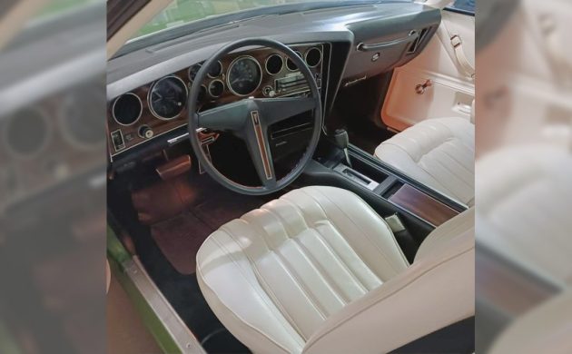 Really cool Lemans. I actually would keep the original wheel covers and fender skirts. ( they just work on this one). Wasn’t there a mid 70’s Cutlass Supreme on Barnfinds in a similar color combination? I don’t remember too many cars from GM painted a green like this.