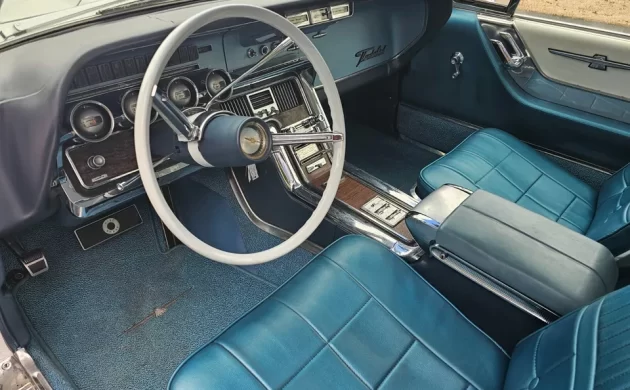 The engine compartment is nearly spotless, with a correct black and gold 390 under the hood, producing its traditional 300 horsepower and 427 lb.-ft. of torque for 1965. The 390 ‘Bird was never a fast car, but it was easily capable of the smooth, quiet super-legal speeds that customers demanded. This one has air conditioning, but the seller doesn’t mention if it works.