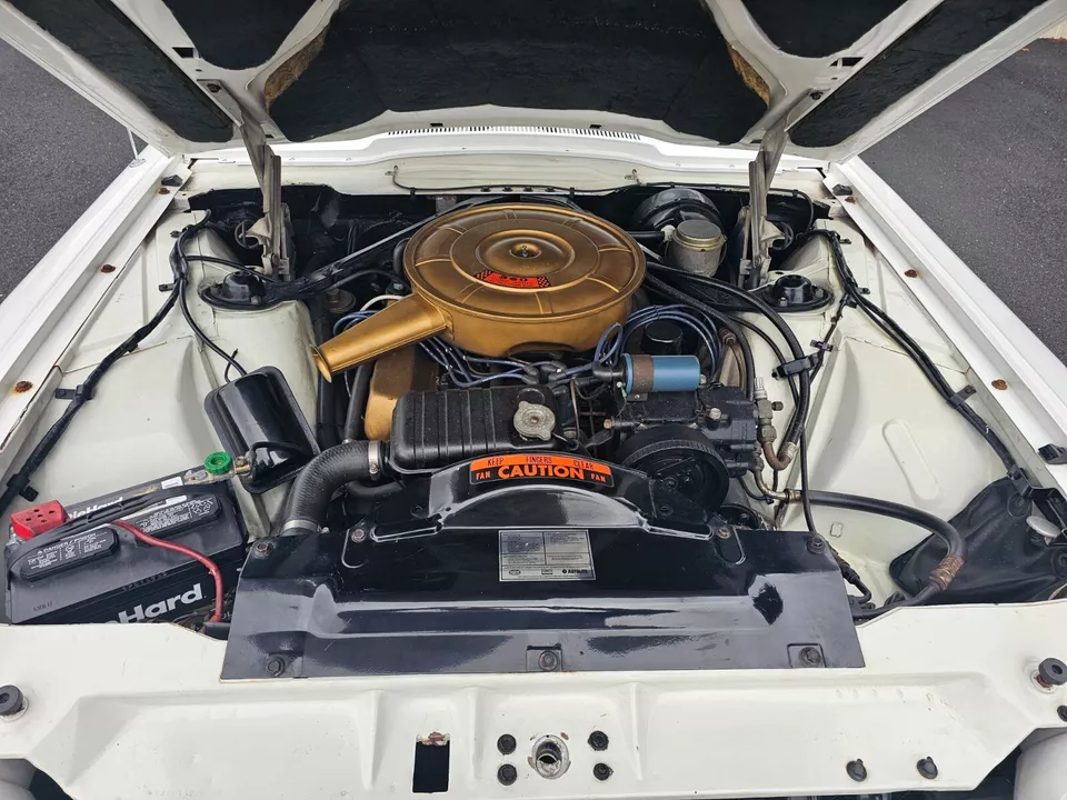 The engine compartment is nearly spotless, with a correct black and gold 390 under the hood, producing its traditional 300 horsepower and 427 lb.-ft. of torque for 1965. The 390 ‘Bird was never a fast car, but it was easily capable of the smooth, quiet super-legal speeds that customers demanded. This one has air conditioning, but the seller doesn’t mention if it works.
