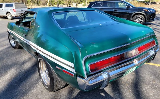 I never really cared for the fender bulges , I think the body lines look cleaner without them. I do however, think the color and tape treatment have a unique look. I am not sure that I have seen one this color, it kind of sets it part. This is an AMC I would be happy to own.