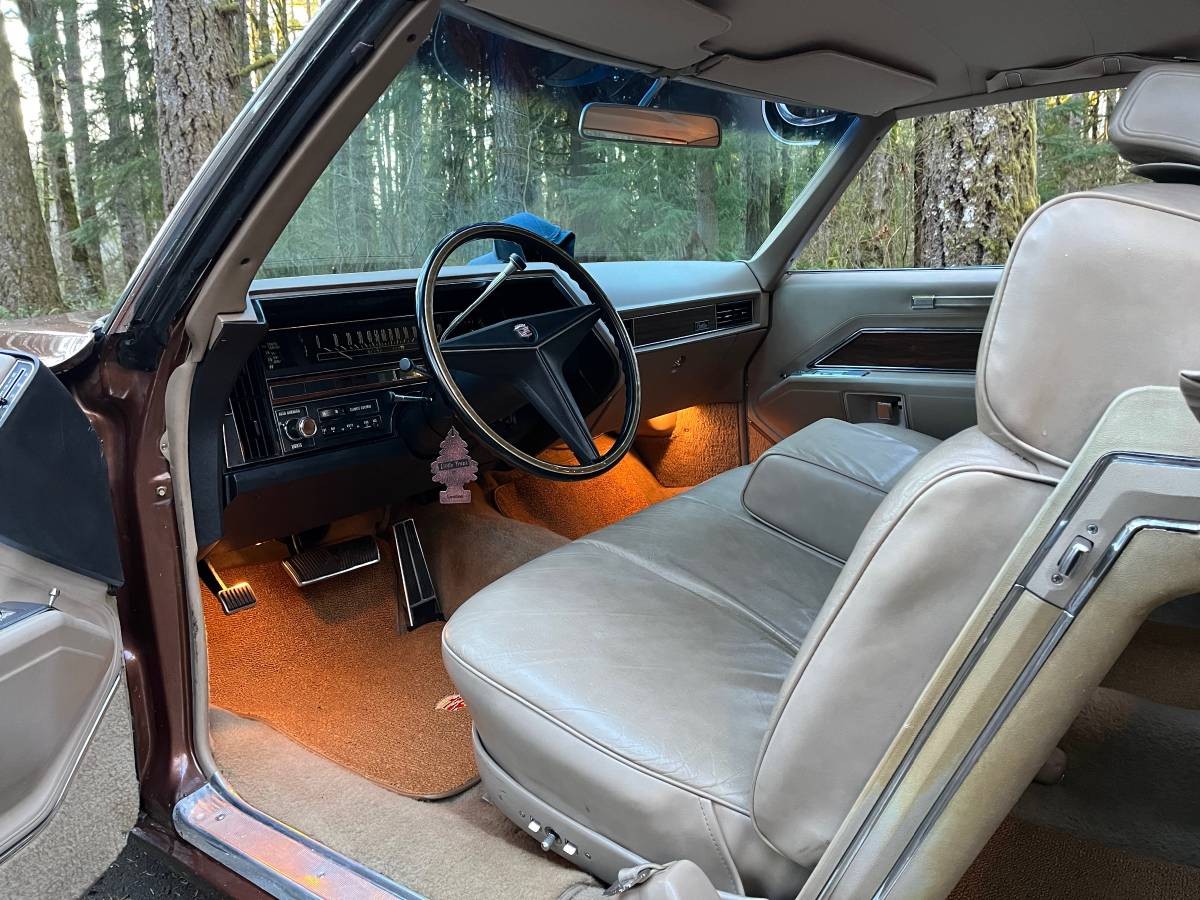 I’m trying to ascertain this Coupe Deville’s hue, and I think it’s either Chateau Mauve Firemist or Chalice Gold Firemist, but I cannot tell with certainty. In some images, it shows as a dark red/purple shade, while in others, it looks brown. Regardless, it presents beautifully with a nice shine and depth. The seller adds, “It was stored in a garage since 1980…the exterior has some parking lot dings & scratches like a late model car, no rust or damage a coat of paint would make this a serious show car.” From what I can spy, a “coat of paint” (let’s call it a professional respray – it’s not a fence) would be superfluous – it’s fine as is. The contrasting vinyl top covering is said to be original, and it is well preserved and not afflicted with the foibles that so often plague that feature. The only detraction, and it’s subjective, are the 1977 vintage wire wheel covers – I’d prefer the original pieces, and for those who feel the same way, they’re included in the sale.