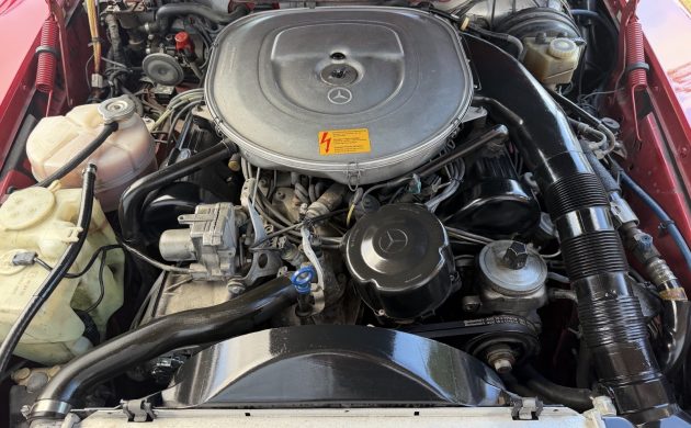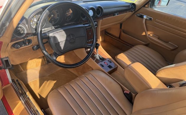 The seller is sparing with their information surrounding the history of this Mercedes, but the appearance is consistent with their claim that it is in as-new condition. The Signal Red paint has impressive depth of color and shine, with close-up shots revealing no significant cosmetic shortcomings. Rust is rarely a problem with these classics, with the underside images confirming that this SL is rock-solid. The new Black soft-top fits tightly, with no sagging or other problems. The deal includes a color-matched factory hardtop, making the Mercedes a practical all-weather proposition. The trim sparkles, and the glass is clear. The car rolls on its original, elegant 15″ alloy wheels, which the seller recently fitted with new tires. Overall, the first impressions are positive. Thankfully, they don’t flatter to deceive.