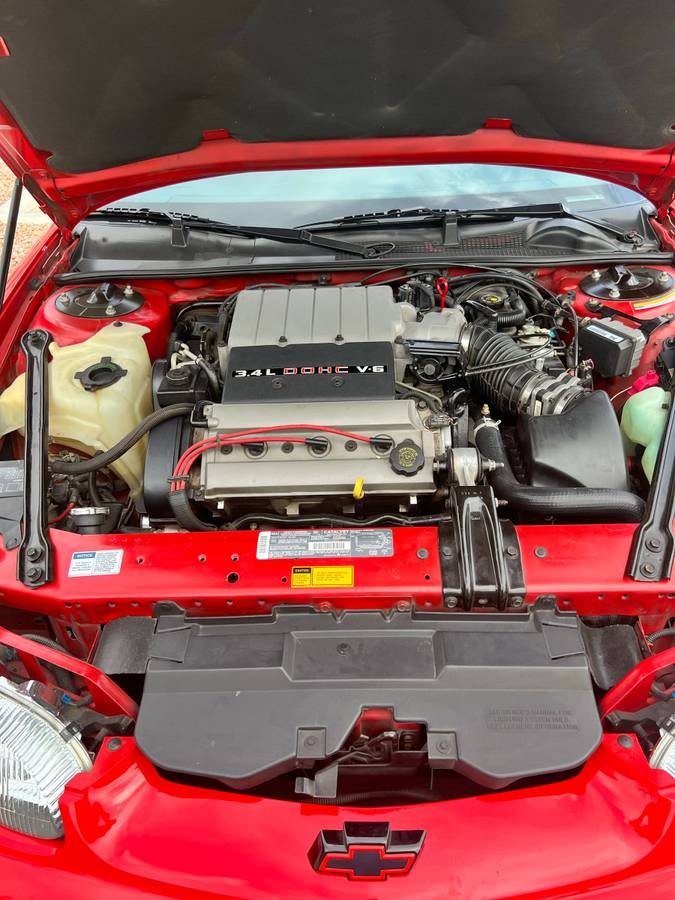 Now, surprisingly, Chevy did give the Z34 a shot in the arm under the hood. The upgraded trim line got a 3.4 DOHC V6 that pumped out a respectable 215 horsepower and 220 lb-ft of torque. To me, this is one of the more satisfying aspects of this model, as overall, GM seemed more inclined to make its money by offering a unique trim line solely on the basis of cosmetic upgrades alone. To actually spend the money and offer a more powerful drivetrain was a major bonus for Chevy shoppers, many of whom would have been satisfied just with the special badges and front air dam. The seller claims this one runs great with no overheating and benefits from a new fuel pump and battery.
