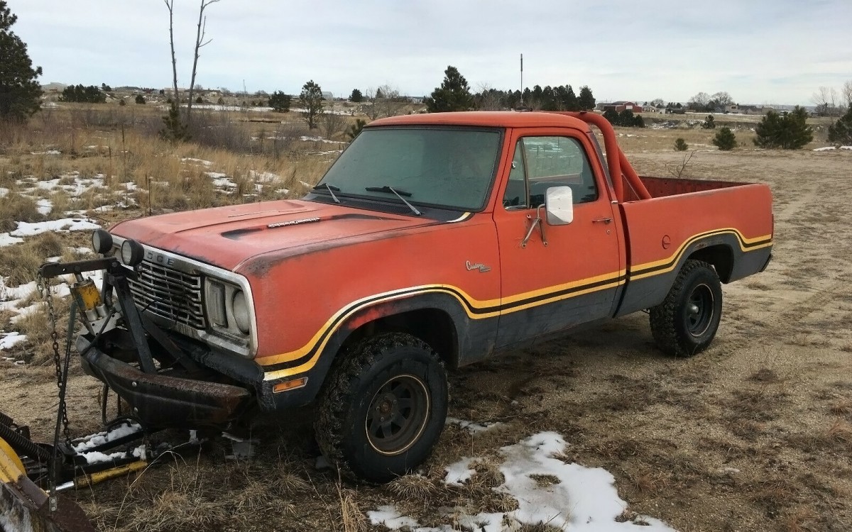 Black bucket seats were standard on 1977 and 1978 Macho edition trucks, they were optional after that. The last year for these trucks would be 1981 and Dodge had renamed their pickups to Dodge Ram for that year. I’m surprised at how nice the interior looks on this truck. I don’t really see any glaring issues other than the windshield which shouldn’t be a huge deal to have changed. The driver’s seat needs some work and the aforementioned rusty sill plate. The seller would rather not deal with having the truck shipped with the plow attached so you can either pick up the whole thing yourself or the plow stays with the current owner.