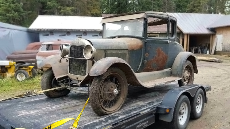 I have actually been to Grande Prairie, Alberta, Canada where this 1929 Ford Model A Coupe is located. It was quite a drive, especially in a car with over 250,000 miles on it at the time. It’s beautiful country as you can imagine with moose crossing signs and actual moose crossing photos and the whole bit. This A-Model, or Model A, is listed on Kijiji in Grande Prairie, Alberta with an asking price of $4,200. Thanks to Simon P. for sending in this tip! This is it for photos, one, single, lonely photo of a Model A Coupe on a trailer. But…