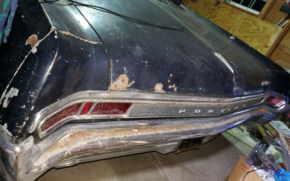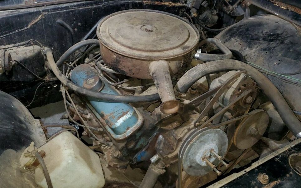 According to the Pontiac Historical Society (PHS), this Poncho came originally equipped with a 338 gross HP, 421 CI V8 mated to a three-speed manual transmission – how unusual! Well, we have a split decision now, the 421 has been replaced with a 400 (though the 421 heads are attached) and the three-speed has been ditched for a four-speed manual transmission. The seller advises that the carburetor is stuck and, “The ENGINE TURNS OVER and CRANKS BUT WILL NOT FIRE”. Apparently, the brakes don’t work either. It appears that there is some stuff missing like the cooling fan and the radiator.
