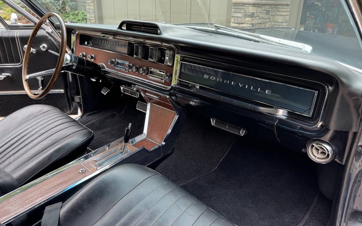 Aaron, as you may already know….. I have a connection to ’66 Bonnevilles. My Dad bought one new. However. It wasn’t as nice as this. His was burgundy and had a black interior with a bench seat, not the console and buckets like this one. He did have the real wood on the dash like this one though. I think I read it was John DeLorean that liked the real wood on the dashboards instead of the Vinyl fake stuff. This color is definitely at the top of the list for sure. Its just gorgeous, inside and out. And the optional 421 is icing on the cake!!!
