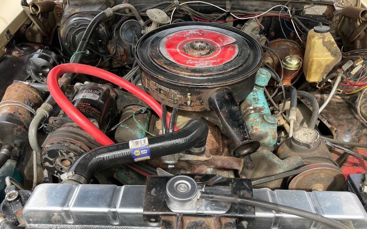 The interior is overall nicely preserved, and while the top of the dash could use some attention, most everything else inside looks to be in decent shape. Something the seller does talk about in detail is all of the equipment found inside this car, and there’s a lot of it, including a Sonomatic Radio with rear seat speakers and electric antenna, air conditioning, power seats, power windows, four-tone horn, and an automatic trunk release button inside the glove box.