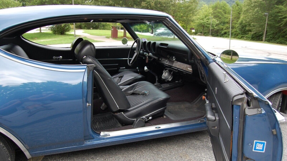 After the seller whipped the exterior into shape and removed several layers of Sebring Yellow paint, Trophy Blue was applied and it looks great today, though it has several years to its credit. The restoration process on this Olds was quite documented, but sadly most of the photos were lost when the seller’s computer crashed (no Cloud backup?). He/she believes the car was originally a rare W-30, but there is no direct evidence as such, but all the earmarks are said to be there to suggest that it was. The VIN helps a little; for example, the 7th character in the VIN is an M which stands for Lansing, Michigan, which is the only place the cars were built in 1969 (according to the seller).