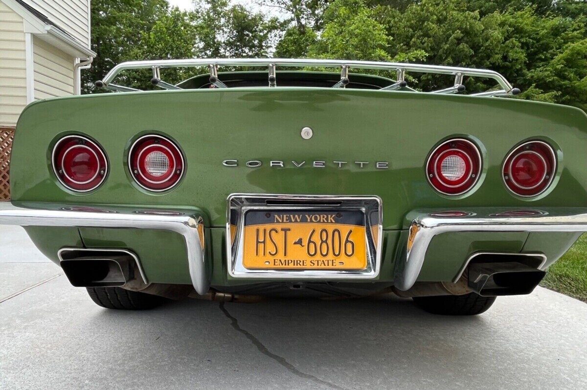 This classic rolled off the line in the final year that the C3 Corvette featured chrome bumpers at both ends. Its Elkhart Green paint shines nicely, and the presentation is impressive from a distance. A close inspection reveals some minor imperfections but nothing requiring immediate attention. There is some evidence suggesting the vehicle may have received a repaint, but this isn’t mentioned in the listing. The fiberglass is generally good. There is no sign of previous accident damage and no evidence of significant cracks or other problems. The seller states the birdcage is rock-solid, and if the same is true of the frame, this beauty is a prime candidate for some light restoration work to lift its presentation to a higher level. That work will include restoring the Rally wheels because they show signs of minor corrosion that could spoil the car’s appearance. The glass looks spotless, and there are no apparent trim issues. A bonus is the seller’s decision to include a spare hood finished in the correct Green shade. Since this car rolled off the line with a 350 occupying the engine bay, I suspect the spare might actually be the vehicle’s original item.