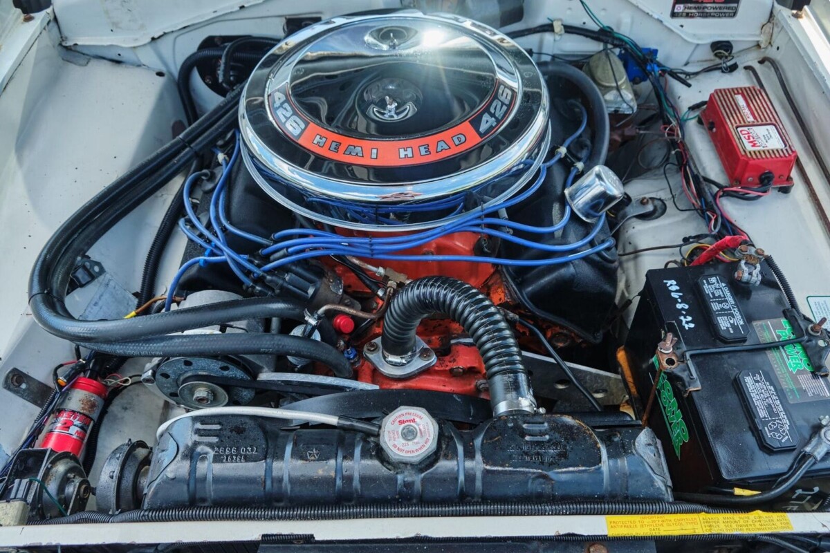 The ”D” code in the VIN supports the roots of a 273 from the factory. Assuming a professional installation was done, the Hemi would add a lot of weight to the front end, so hopefully, things were beefed up to support that extra bulk. An automatic transmission is part of the set-up but is it original or was it replaced with the motor? The overall mileage for the car is under 70,000 miles. This looks like a beautiful automobile with the trunk being the major flaw. Since you couldn’t get a 1967 Barracuda with a Hemi, what’s the top-end value for this car going to be?