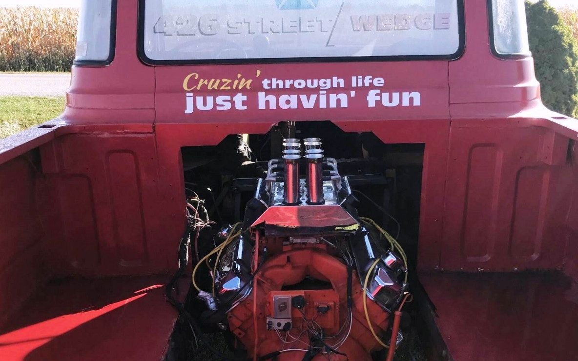 Before everyone had to have a Hemi’ the 426 cid (7.0L) Max Wedge V8 tore up drag strips in cars like the lightweight Dodge Coronet and Plymouth’s Belvedere. This Street Wedge was not as radical, but we might assume this one is built with more power than stock. “Just havin’ fun” summarizes a vehicle like this. Some people are happy to let others enjoy the impractical, and some relish creating things just for fun. My mother used to tell me “Life is short, so why not cut up an old cab-over pickup truck and jam a giant engine in the back?” Well, I might be embellishing a bit, but it was something like that. Still, for a monthly payment lower than some people’s golf habit, where are you going to find more fun than this radical A100?